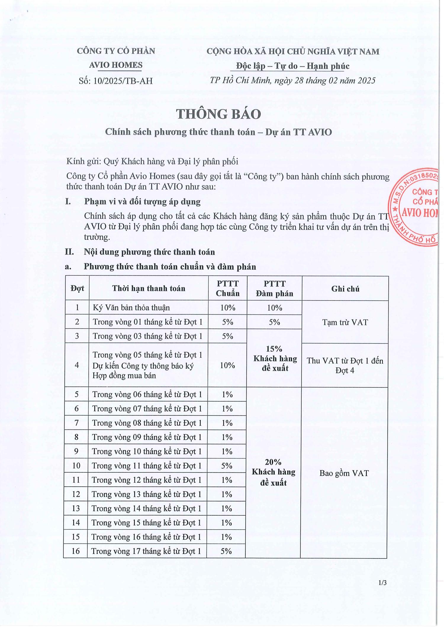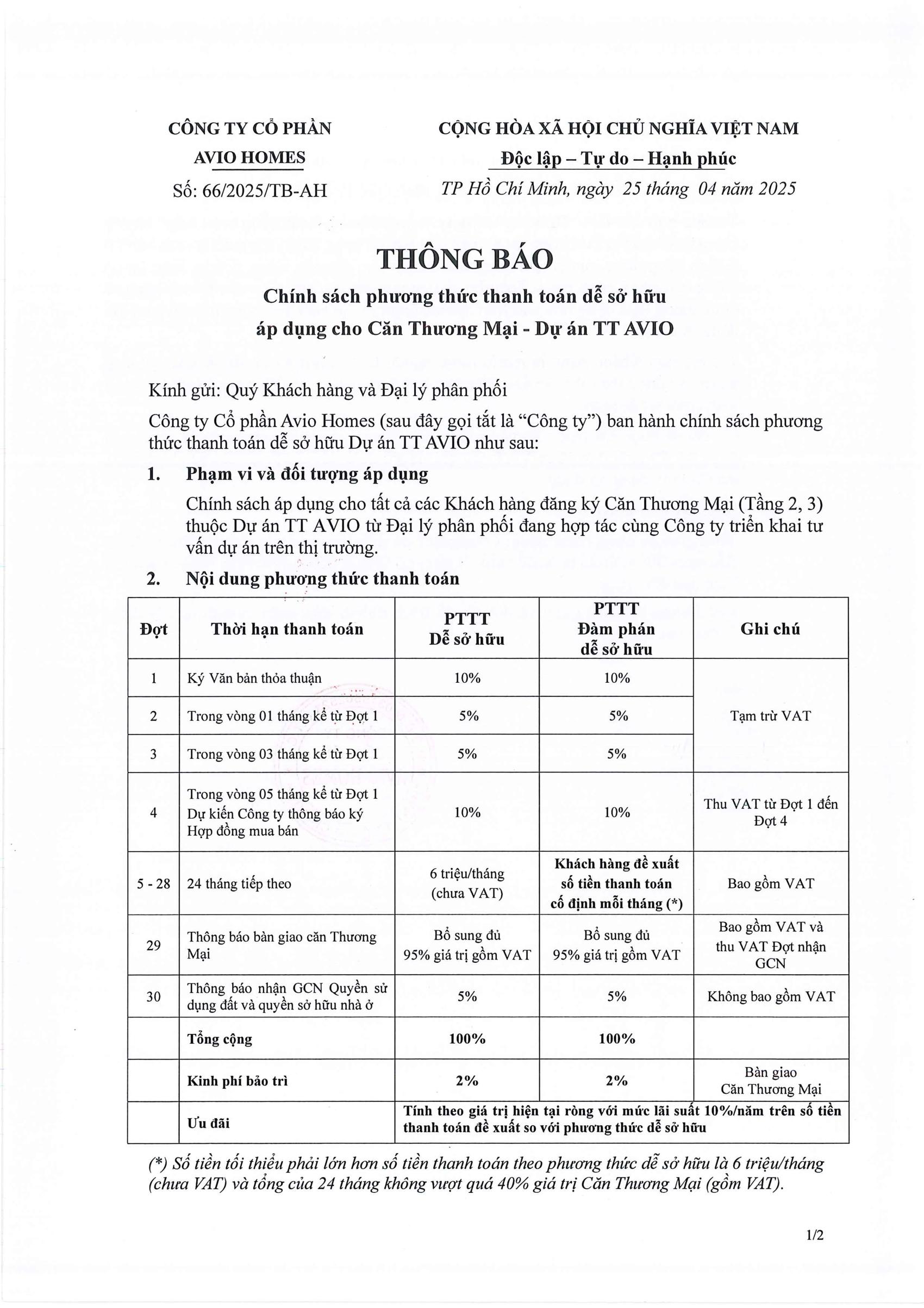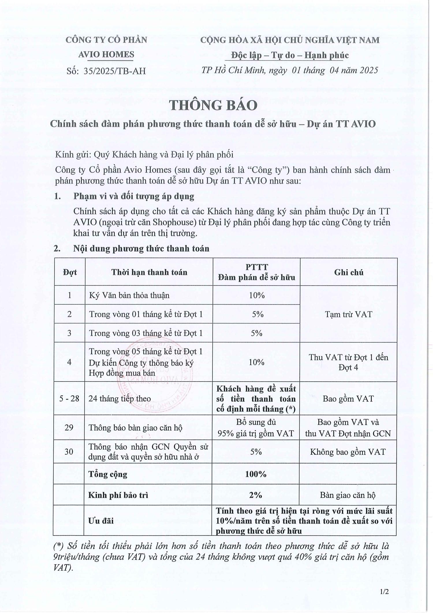 3/ 👉 Chính sách thanh toán “1%/tháng” nhẹ nhàng & cơ hội đầu tư tăng giá hấp dẫn.